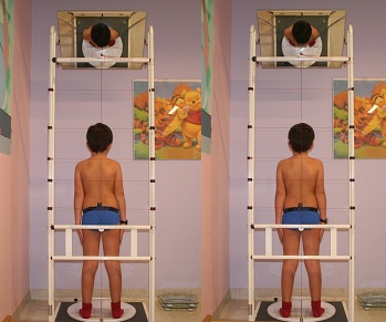 Fig.5. valutazione posturale prima e dopo la correzione della latero deviazione mandibolare.
